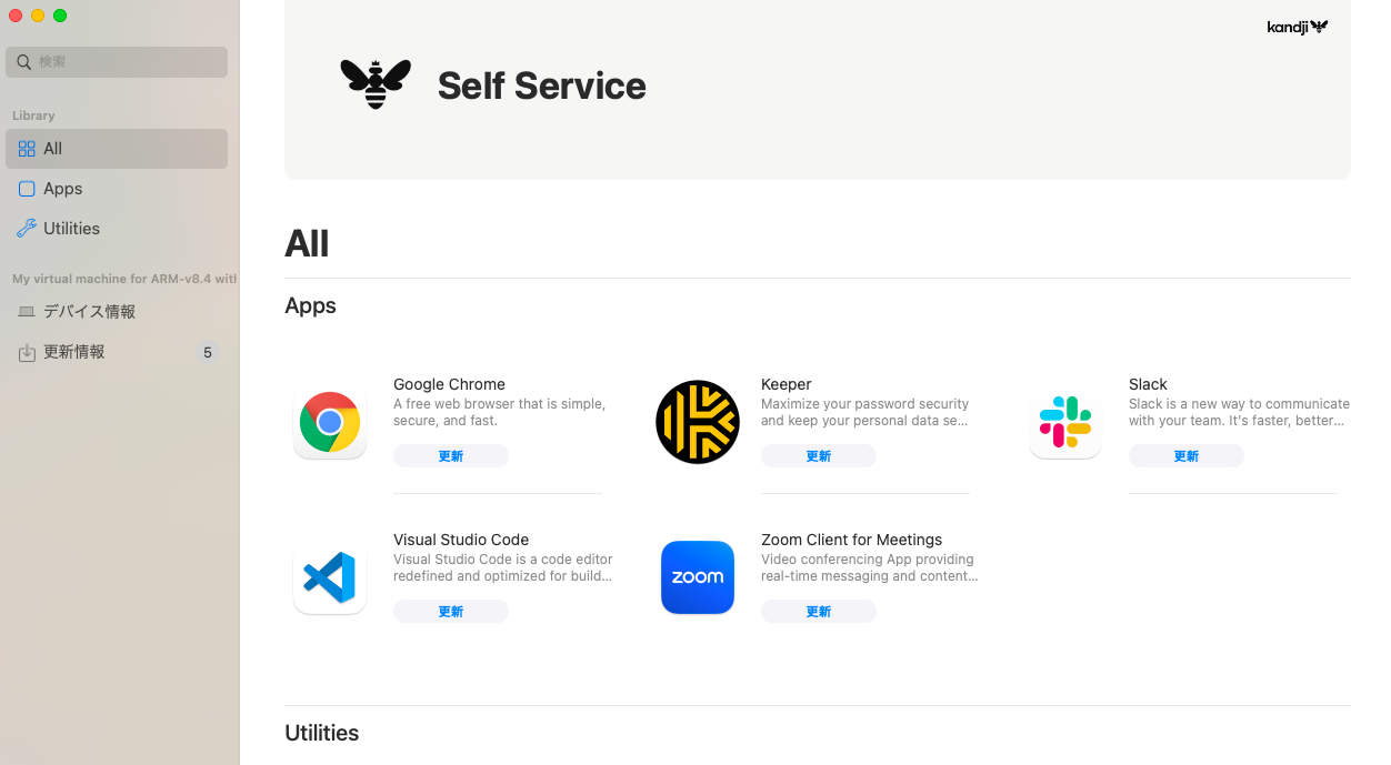 MDMがない場合、アプリの更新管理は利用者が手動で行ったり、IT管理者が指示を出す必要がありますが、Kandjiではアプリ自動更新機能が搭載されているため利用者は意識することなく最新のアプリケーションを自動的に適用できます。これにより、IT管理者と利用者の作業工数を大幅に軽減し、セキュリティ強化と業務効率化を同時に実現します。