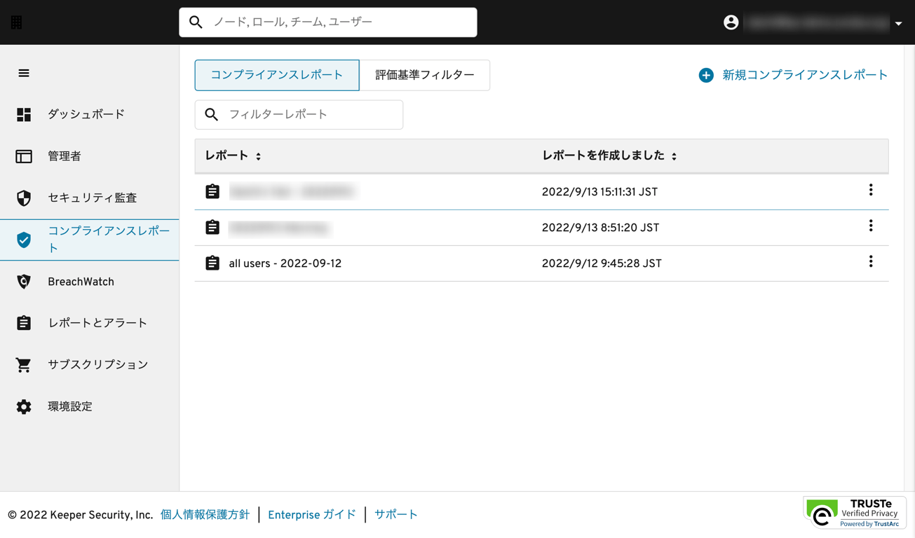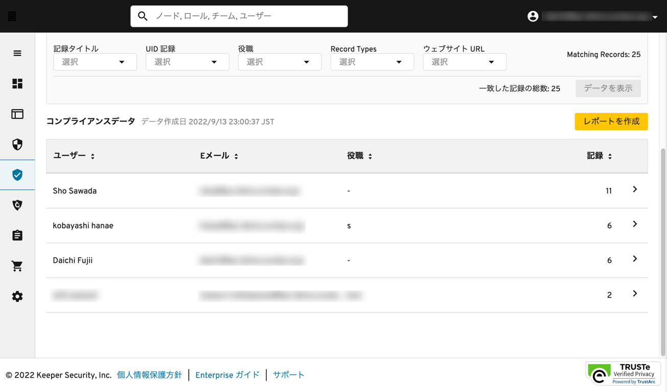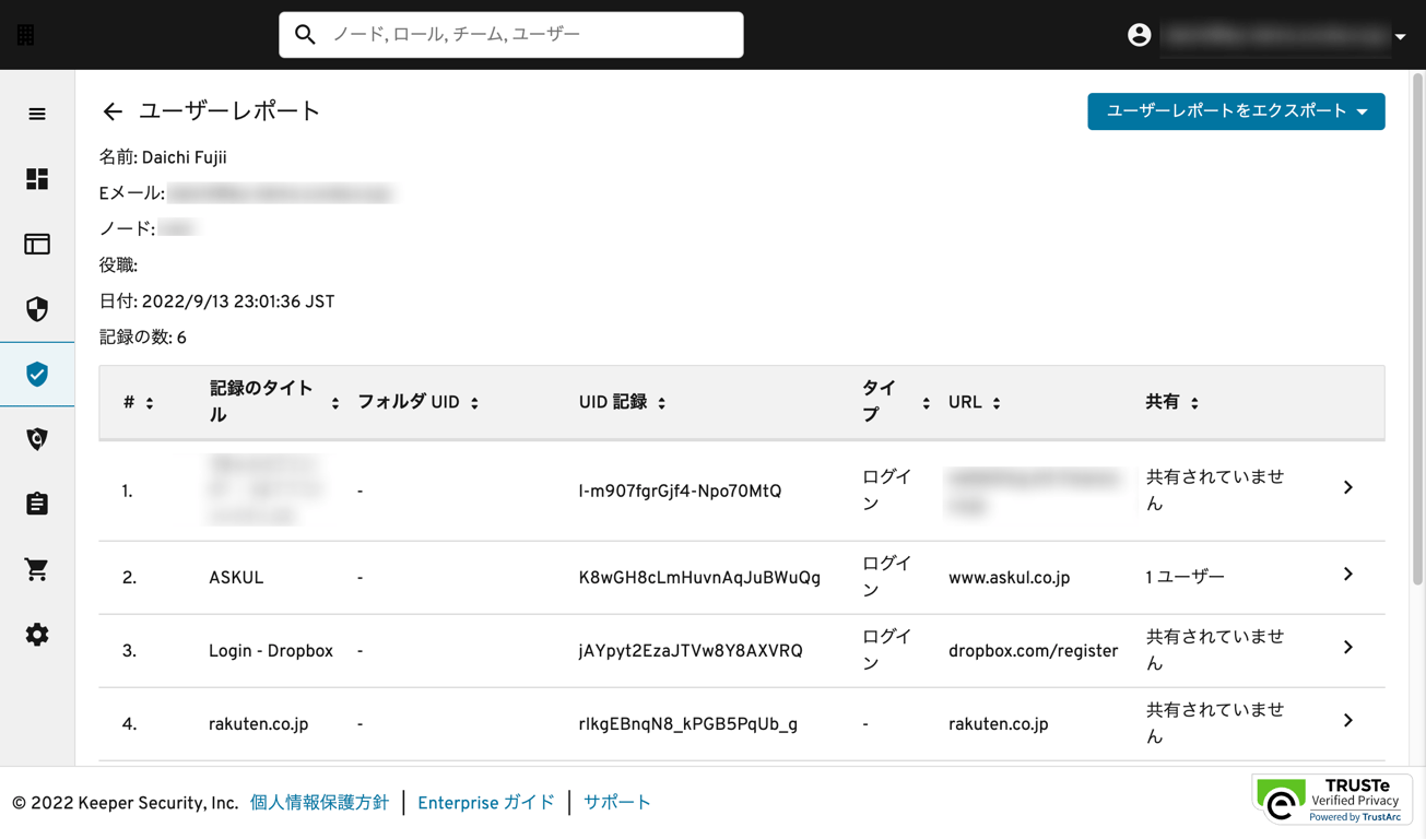 - 退職者に関するレポート作成Keeperユーザーでなくなるユーザーに関して、保有しているパスワードなどの一覧を作成することが可能