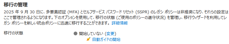 従来の多要素認証の設定(レガシ MFA ポリシー)や従来のセルフパスワードリセットの認証方法(レガシーSSPRポリシー)を利用している場合は2025年9月30日に非推奨になってしまうため、後継の「認証方法ポリシー」への移行が必要となります。