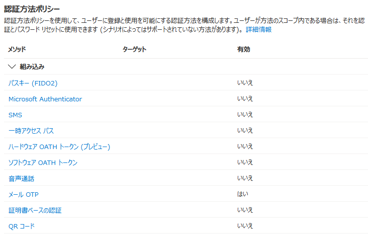 - Entra ID → 認証方法 → (管理にある)ポリシー