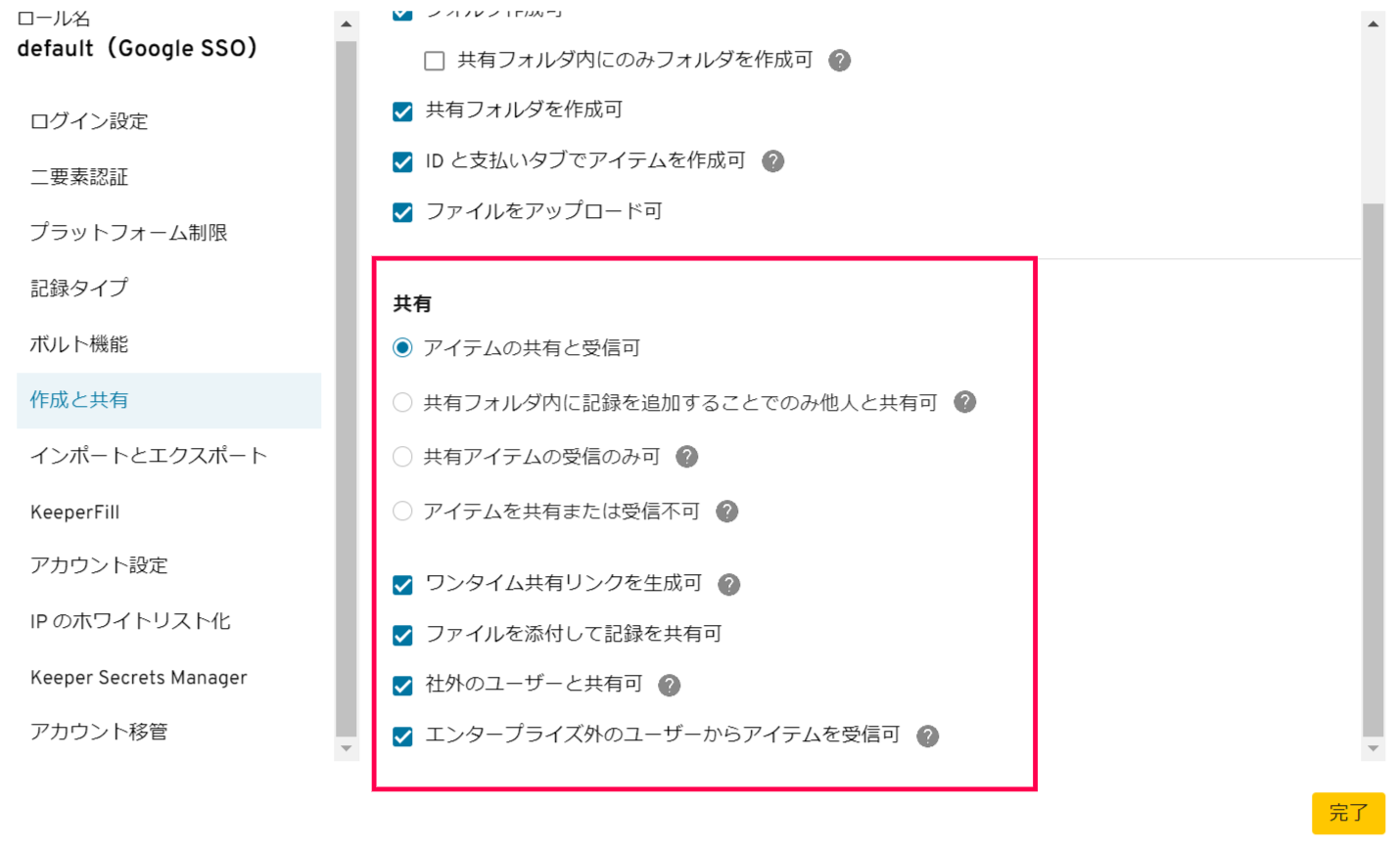 もともと、Keeper Personal アカウント → Keeper Enterprise アカウントへの共有は制限不可だったので、ここも管理者側で設定できるようになったということですね。