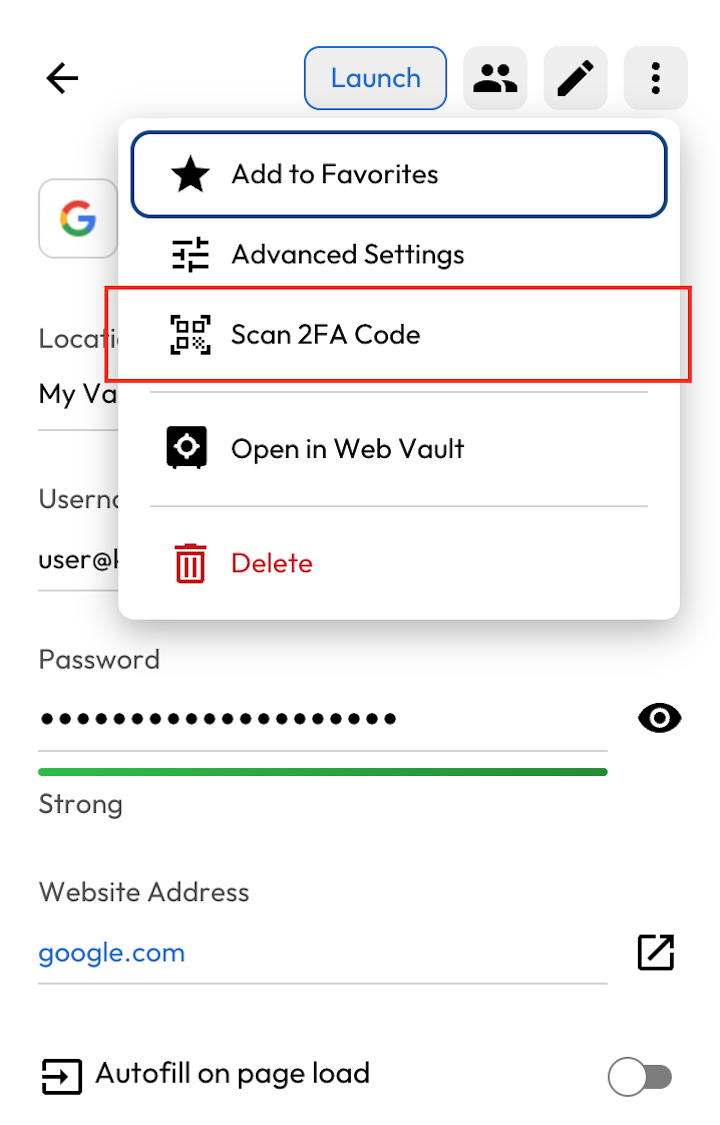 ブラウザ拡張機能から直接、TOTP(時間ベースワンタイムパスワード)コードを記録に追加できるようになりました。ウェブサイト上のQRコードをスキャンするだけで、将来の使用のために記録に自動的に入力されます。以前はWebボルトやデスクトップアプリでしか行えなかったTOTPコードの追加が、この改善によりブラウザ拡張機能からより便利に行えるようになりました。QRコードの代わりにシークレットキーが提供された場合は、手動で入力することも可能です。
