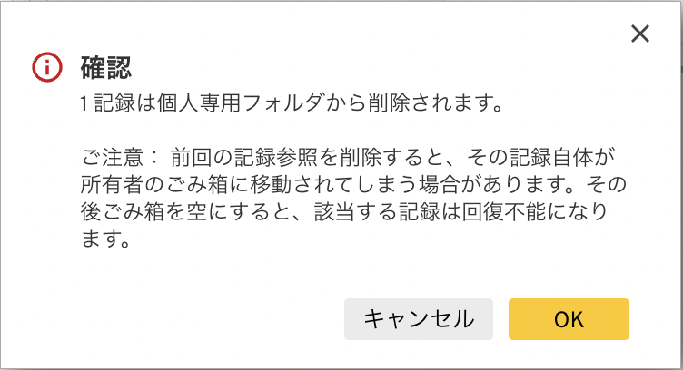 - 消したい記録を検索・選択し、[オプション] > [削除] を選択します。