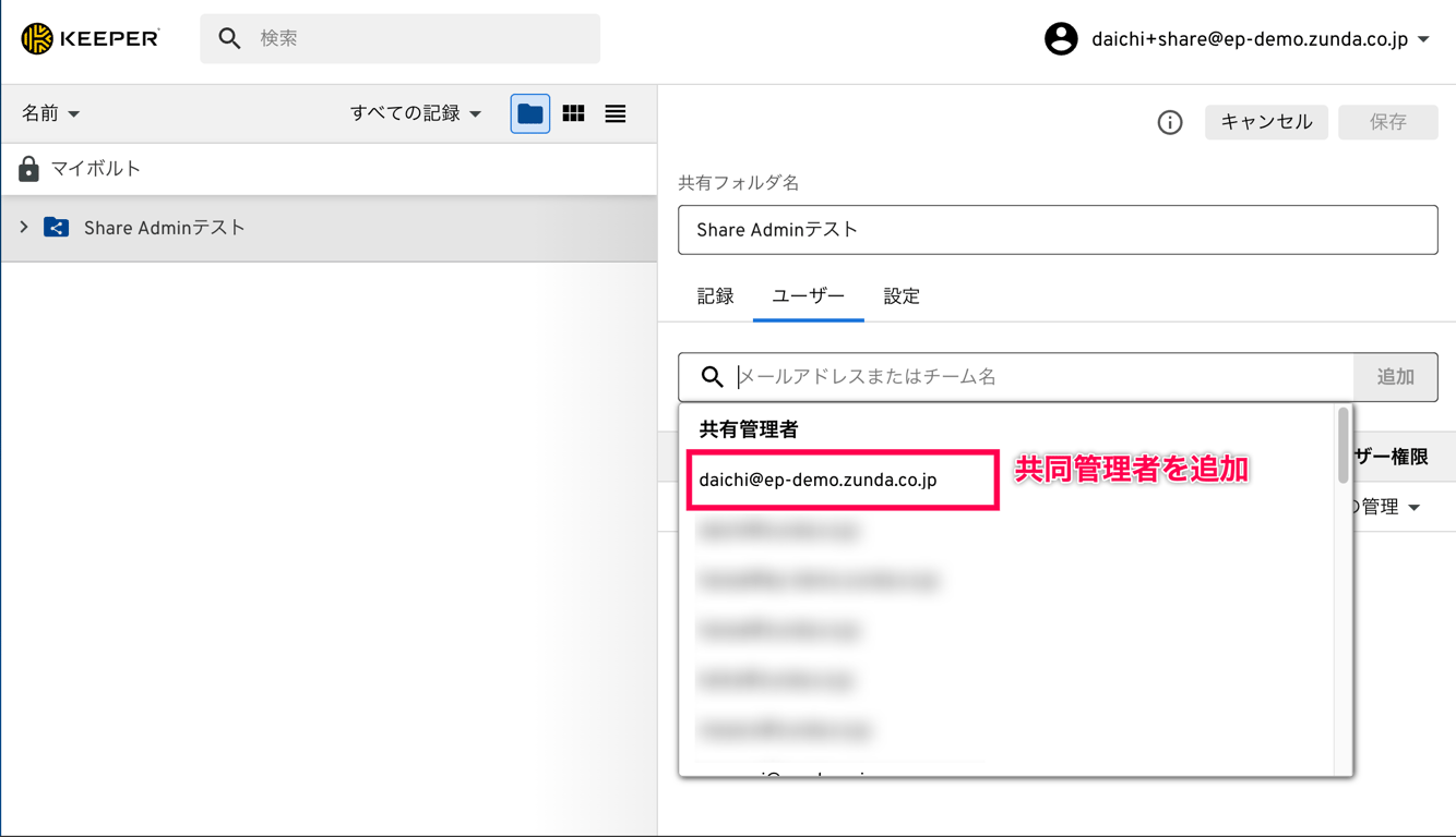 Share Admin管理者は、共有フォルダに追加されると、自身のボルトから共有フォルダの編集を行うことが出来るようになります。