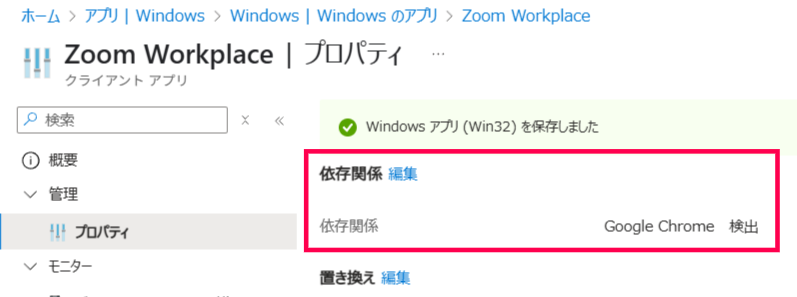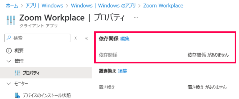 アプリの種類が『Windows アプリ (Win32)』の時に使用できる機能ですが、アプリ自体の仕様による直接的な依存関係(例えばランタイムを入れてからアプリを入れる、本体を入れてから設定を配る など)に活用されている方が多いかと思います。