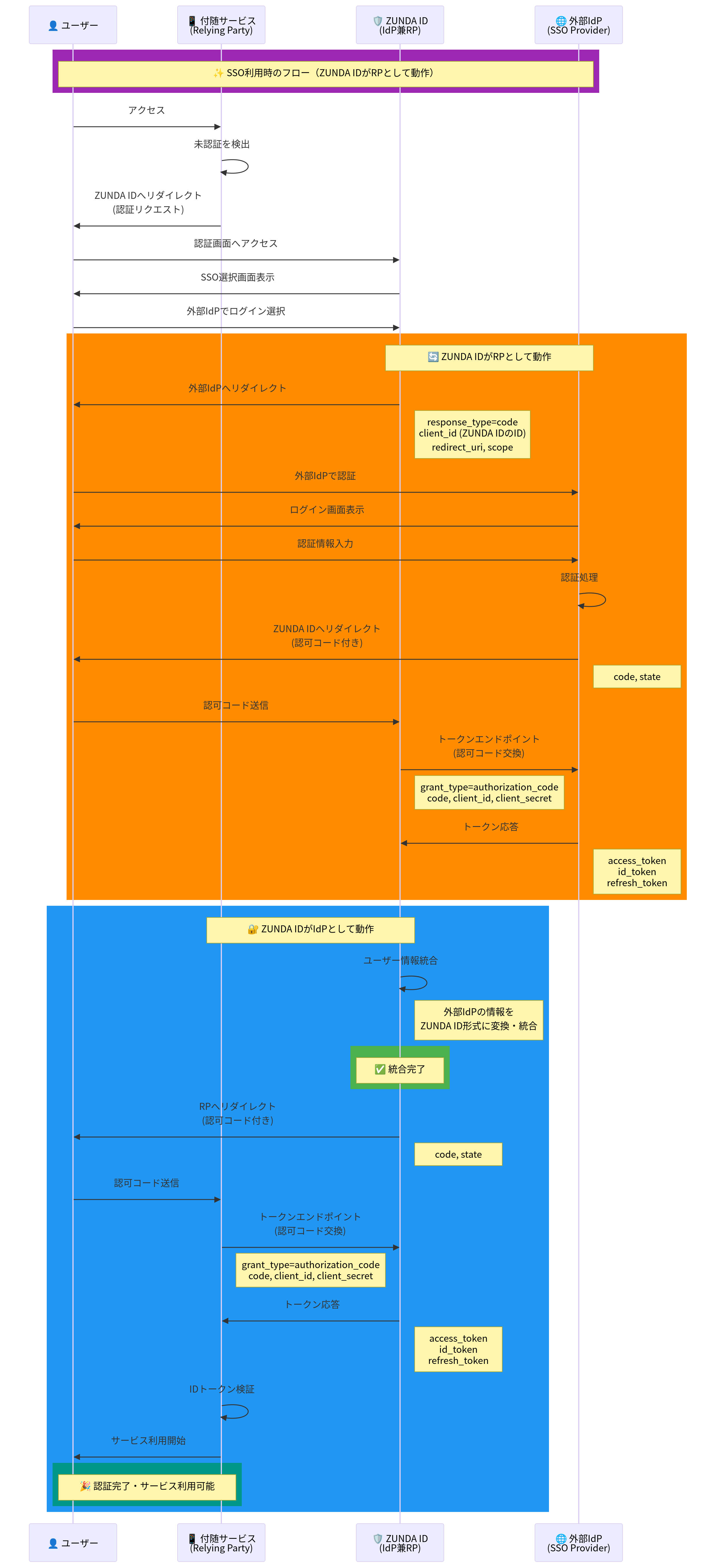 (厳密に言うと、ZUNDA ID へのログインにシングルサインオンを利用できるため、ZUNDA ID は IdP であり RP でもあります)