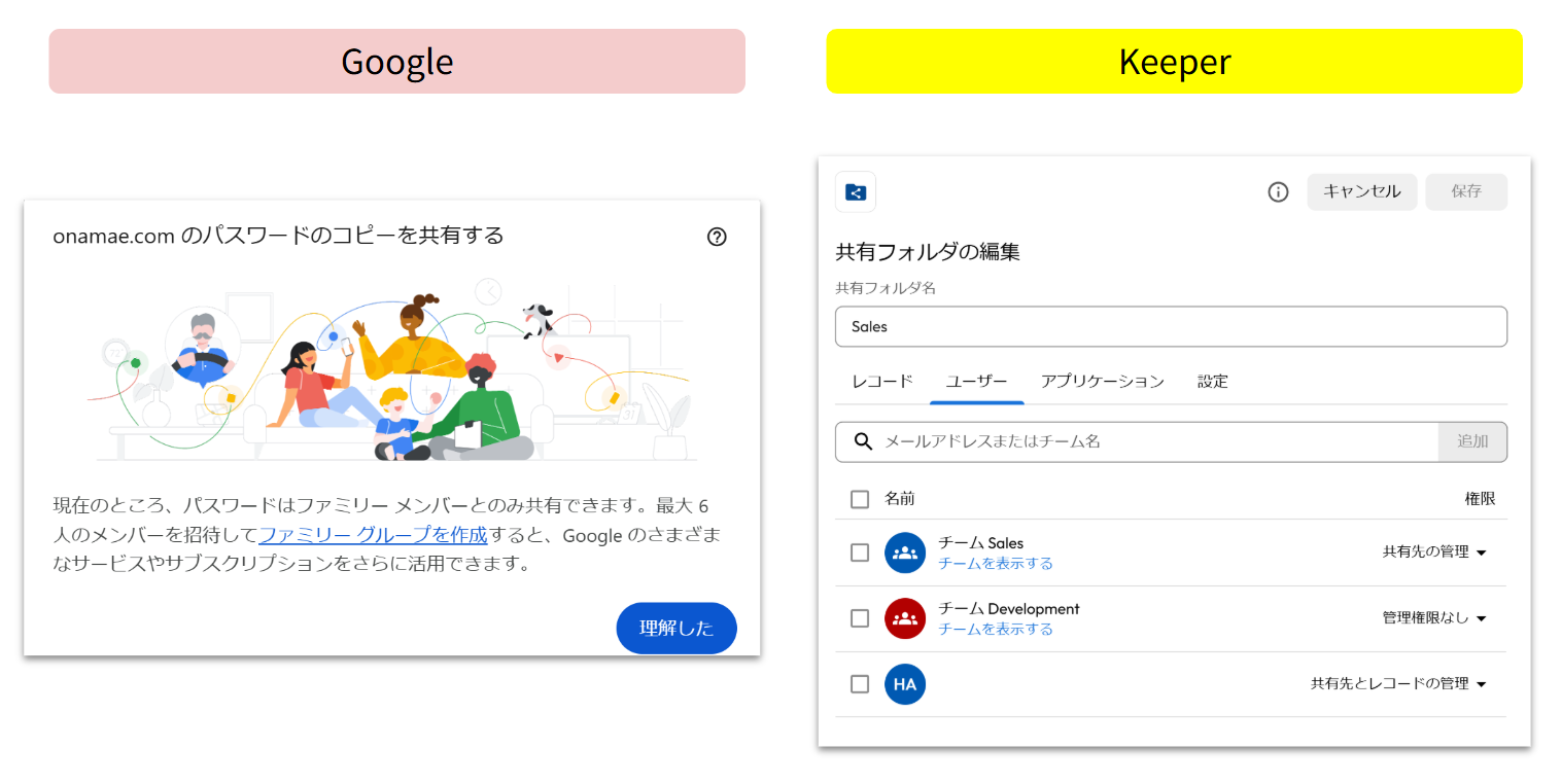 Google も機能強化しているものの、「強度の高いパスワードの生成」「共有」は Keeper のほうが利便性が高い。