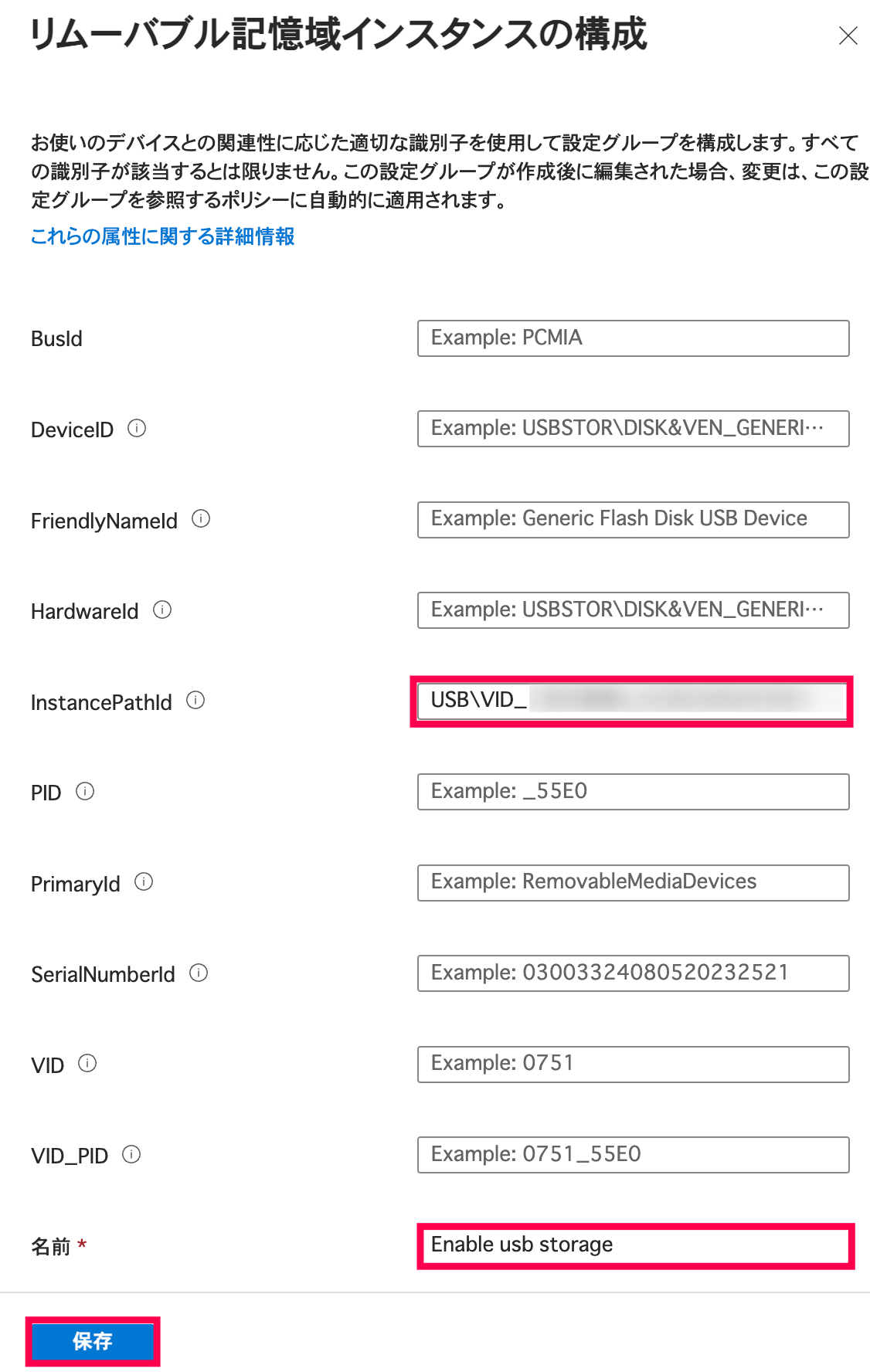 - InstancePathId: 冒頭で控えたデバイス インスタンス パスを入力