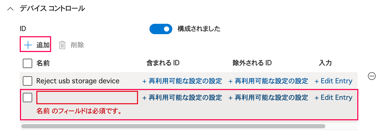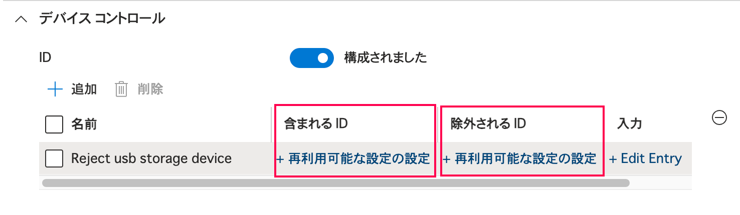 - 含まれるID: 『「すべてのUSBストレージ」を対象とした設定』で作成したものを指定