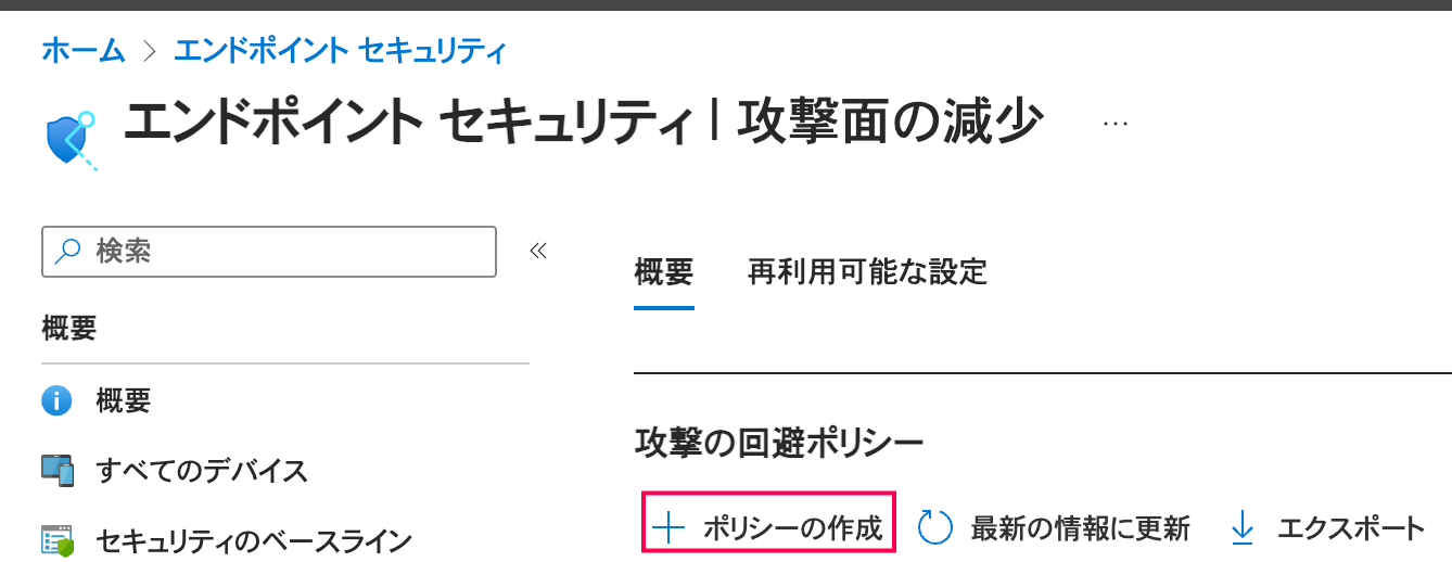 - [エンドポイントセキュリティ] >[攻撃面の減少]をクリック
