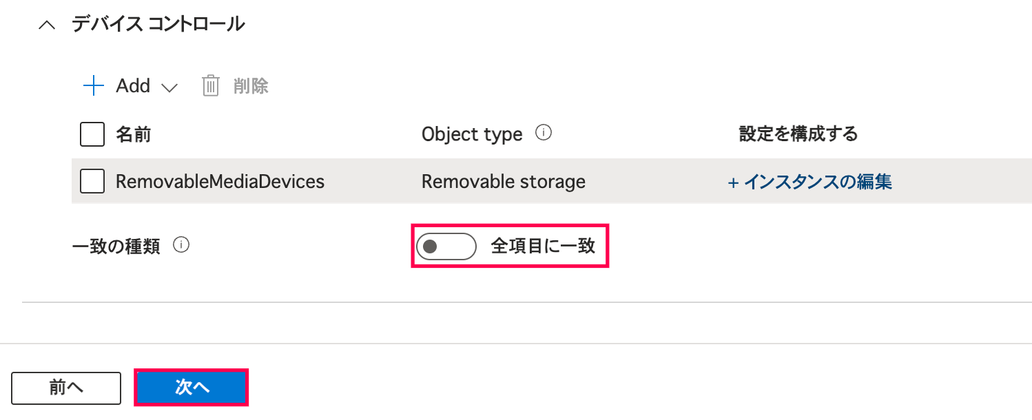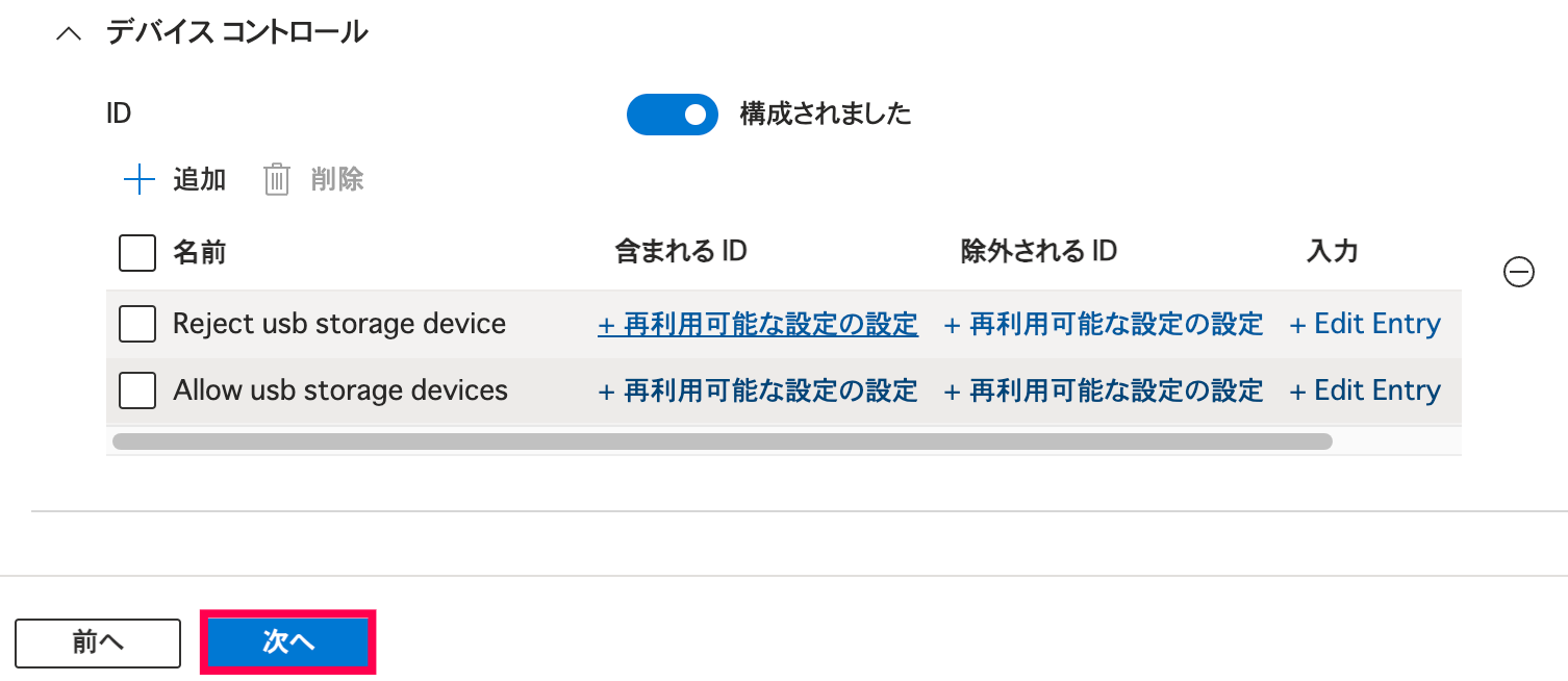- 含まれるID: 『「許可したいUSBストレージ」を対象とした設定 (特定デバイスのみ許可)』で作成したものを指定