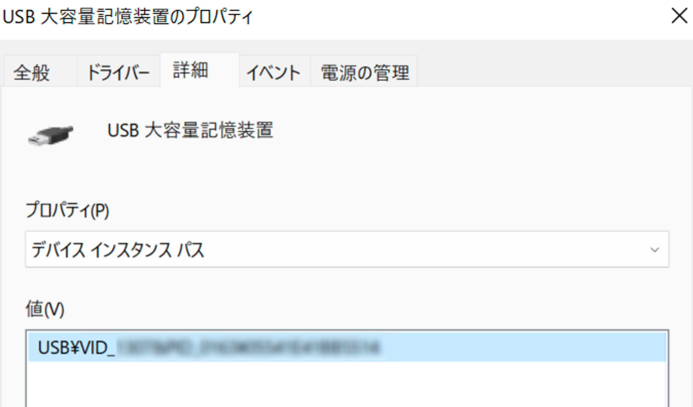 - [詳細]タブを開いて[プロパティ]にて「デバイス インスタンス パス]をコピーしておいて下さい