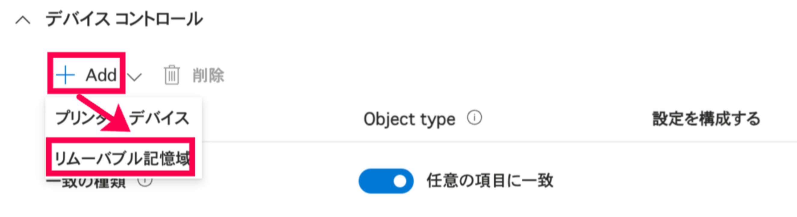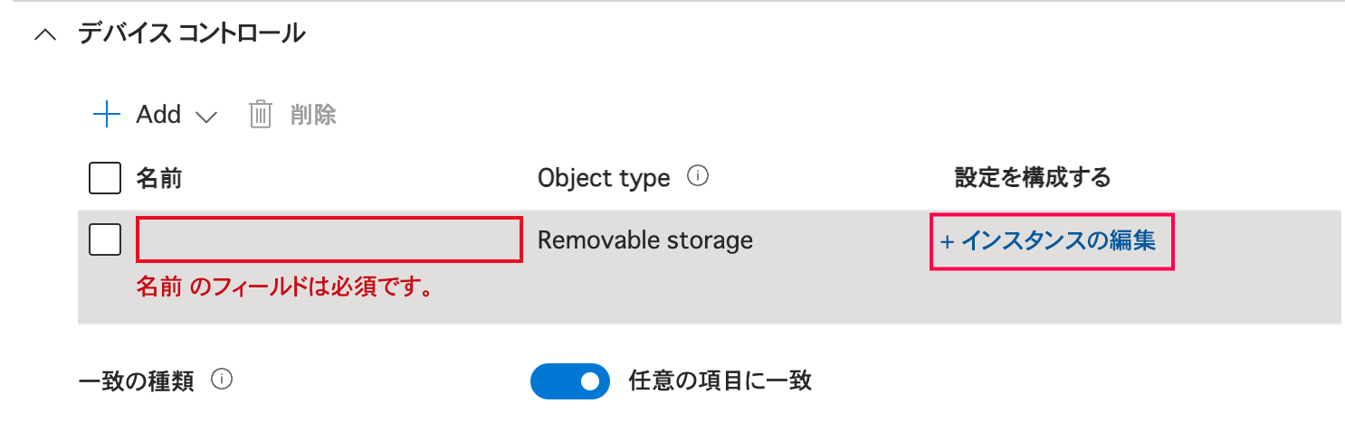 - 複数のデバイスを許可する場合は、[+Add] > [リムーバブル記憶域]をクリックして前項の構成作業を繰り返す
