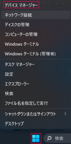 - [Windowsアイコン]を右クリック > [デバイスマネージャー]をクリック