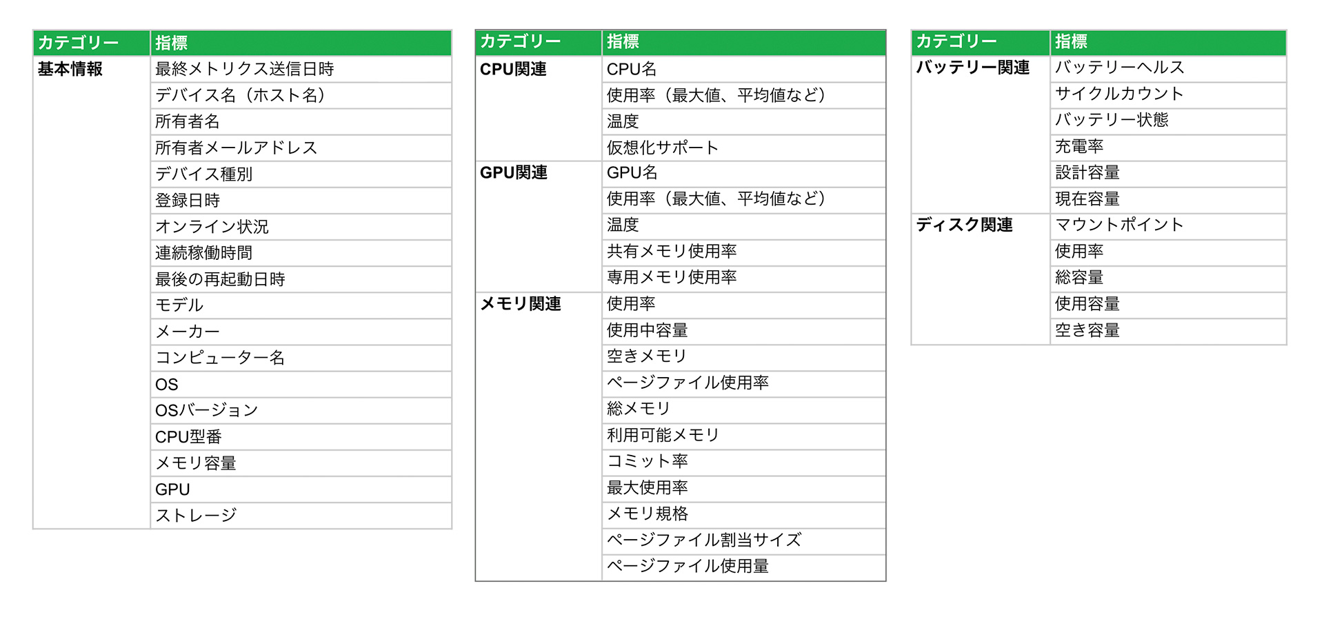 ベータテストでは、ネットワーク関連のメトリクスを中心に取得するようにしておりました。今回、製品版のリリースに際して、大幅に取得できるデータを拡充いたしました。