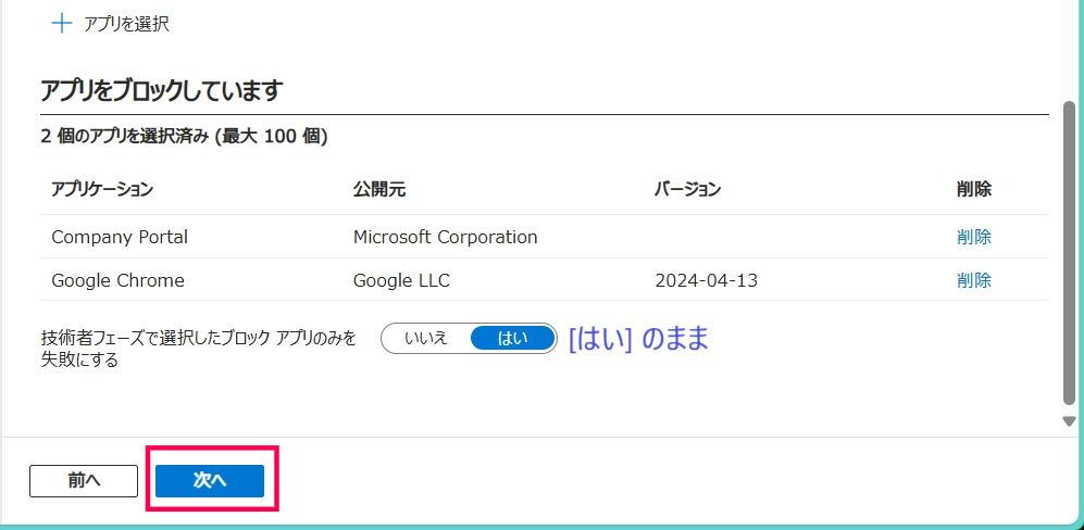 - その他、前述のポイントの通りにアプリの設定 および 割り当てがされていること